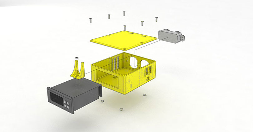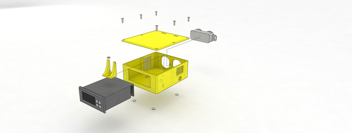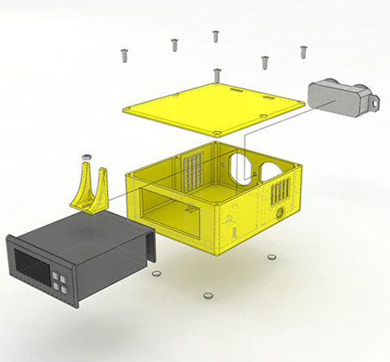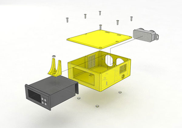 STC-1000 All-Purpose Temperature Controller enclosure with rear mounted power outlet. Clear Vinyl Surface Pads applied to the bottom to eliminate it from sliding around.